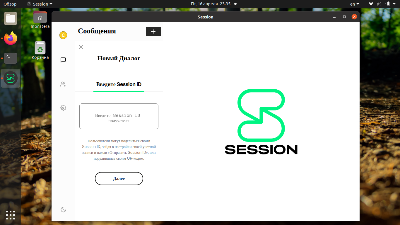 Для установки Session в терминале Ubuntu введите следующую команду: