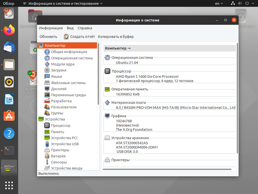Несмотря на то, что в HardInfo больше вкладок, информации о системе удастся получить не многим больше CPU-X. Часть из них относится к программной составляющей, другая – к сетевым подключениям. Нас же интересует раздел Устройства и самая первая вкладка Компьютер.