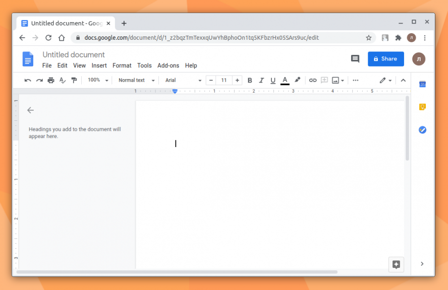 Google также имеет онлайн сервисы для редактирования документов. Интерфейс выглядит скромно, большая часть элементов располагается в меню. Огорчает отсутствие русского языка.