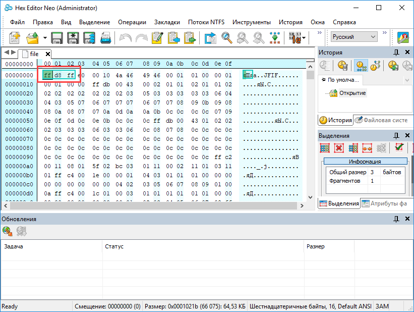Первый метод ASCII определяется с помощью текстового редактора, например, Notepad++, правда, стоит учесть один момент – некоторые наборы байтов не удастся преобразовать в формат ASCII, а значит рекомендуется применять HEX-редакторы. Запустив любой файлик с помощью такой утилиты, в окне отобразится вид матрицы с последовательностью байтов, где один байт содержится в одной из ячеек. Сведения о дескрипторе обычно находятся в первых 3-х ячейках, редко в большем количестве. Ячейки считаются по горизонтали. Данные, отображённые в ячейках представлены в виде шестнадцатеричном коде.