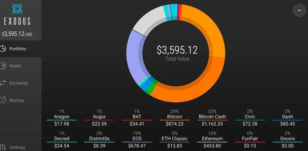 Десктопный кошелек с «холодным» типом хранения, впервые появившийся в сети в 2016 году. Exodus относится к «тонким» видам, то есть скачивать его придется, но не всю цепочку блоков, поэтому на устройстве он займет немного места.