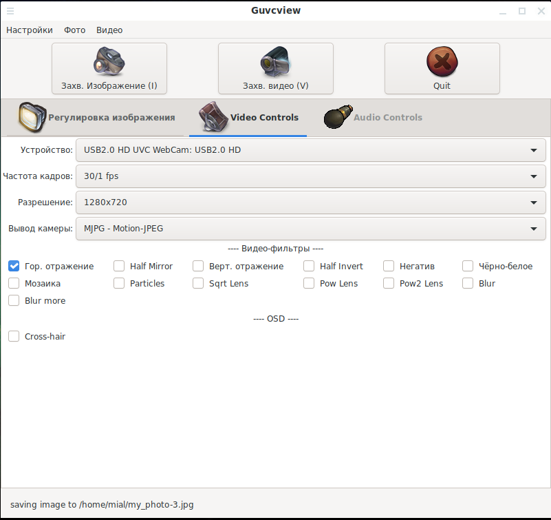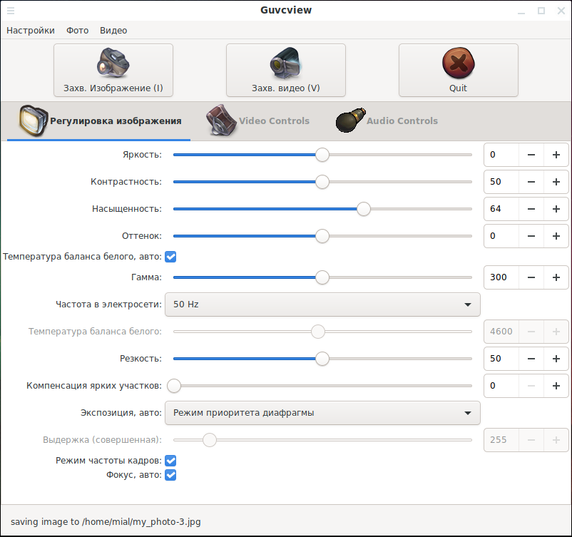 Программа GTK UCV Video Viewer умеет снимать фотографии и записывать видео со звуком с камеры ноутбука и компьютера. У программы много настроек фотографий, видео и звука. Также имеются простые для видео и голоса.