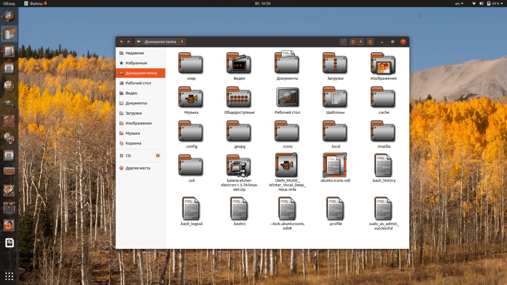 Скачайте их на вкладке Files и распакуйте содержимое в папку ~/.themes, так же как и в предыдущем пункте. Должно получиться вот так:
