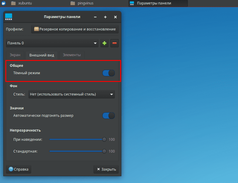 Xfce 4.14: Утилита Panel Profiles для управления профилями панелей