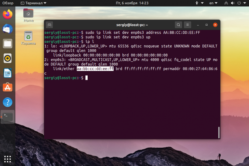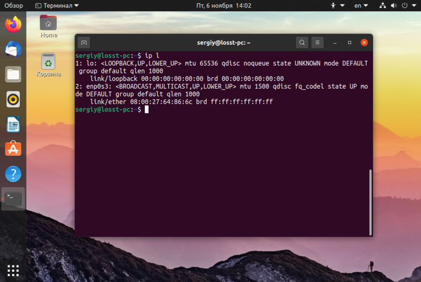 Давайте разберем некоторые аспекты данных команд. Начнем с аналога команды ifconfig — команда ip с параметром link управляет свойствами сетевого интерфейса: