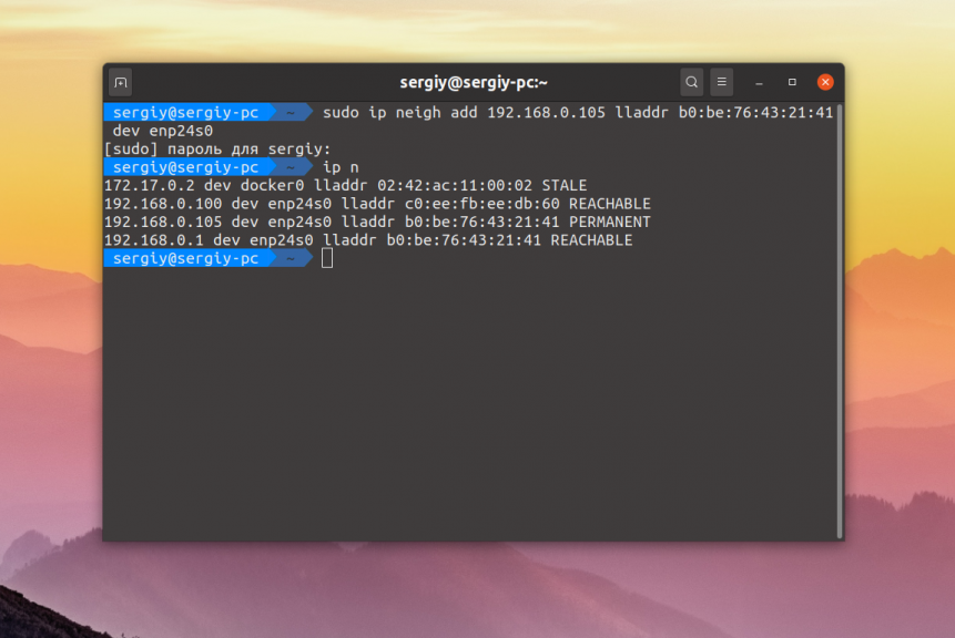 iproute:~# # установка MAC адреса
