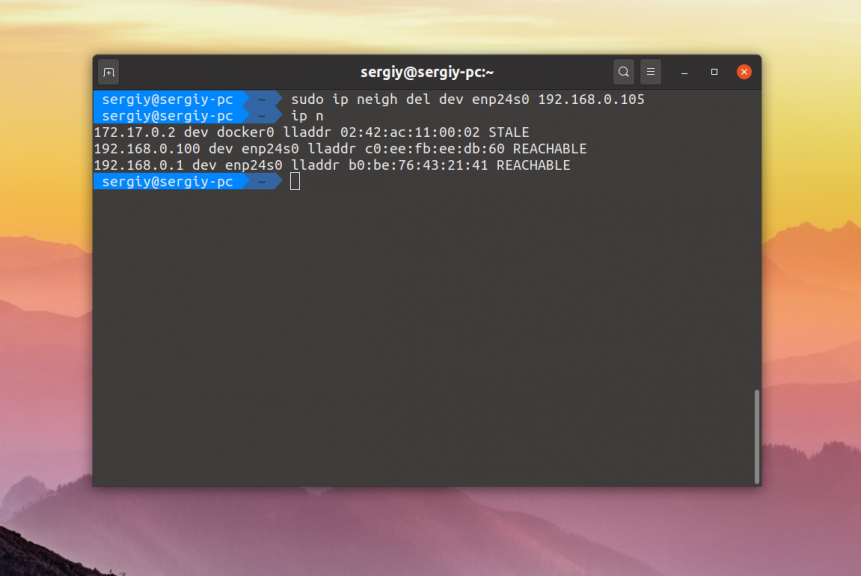 | 1 | # ip route del default via 192.168.1.1 dev enp0s3 |