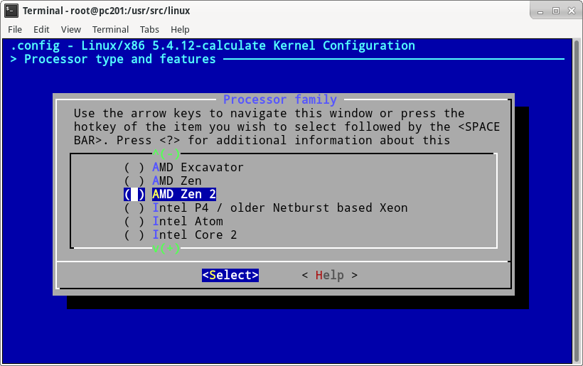Выполните настройку ядра, выбрав ваш процессор из нового списка: