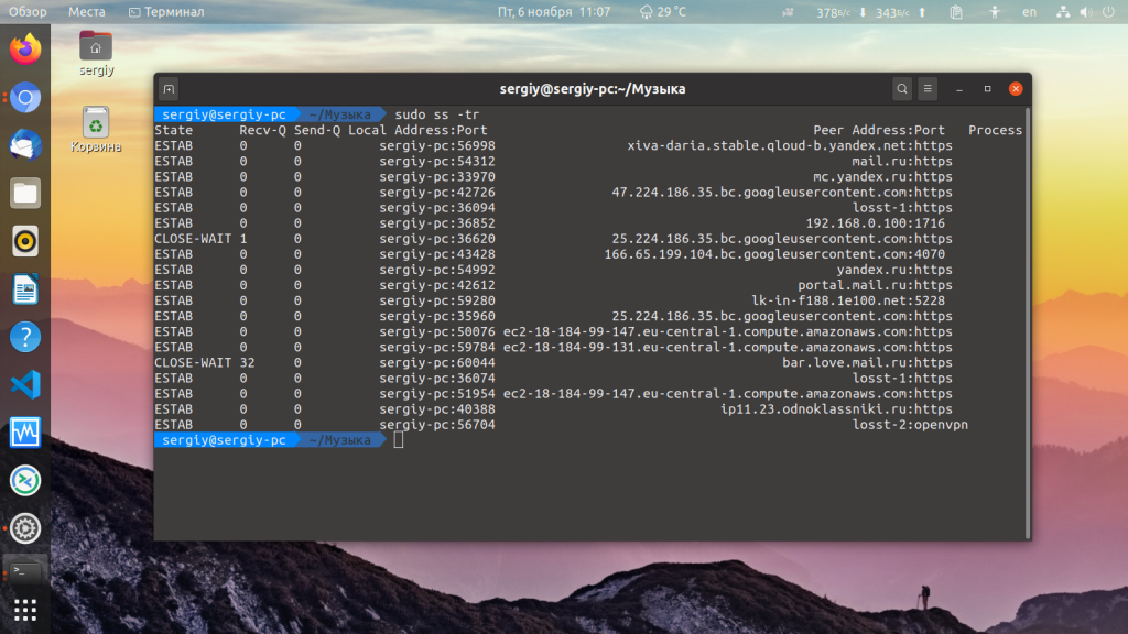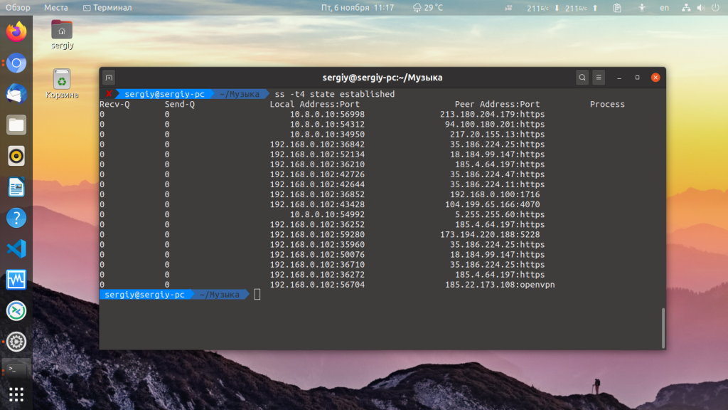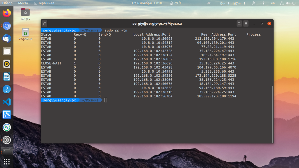 А теперь давайте рассмотрим примеры использования утилиты ss Linux. Возможно, из описания опций вы мало что поняли, но с примерами все встанет на свои места.