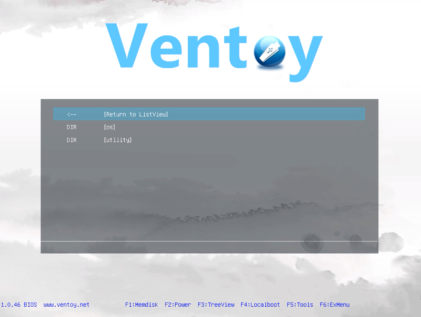 В нижней части окна Ventoy выводится информационная строка, в которой перечислены клавиши управления программой.