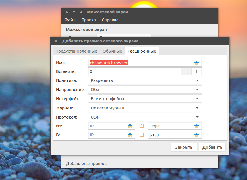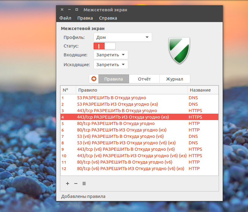 Настройка правил gufw