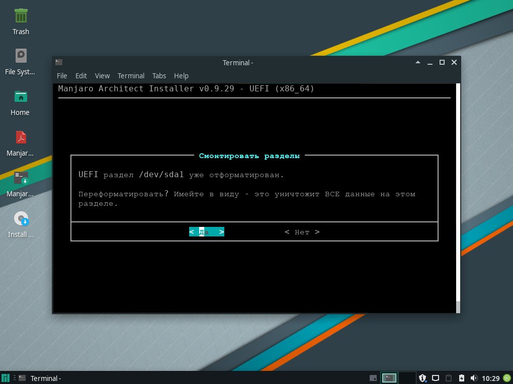 Вот и все, далее остается лишь завершить выполнение установочной программы и перегрузить компьютер. Дистрибутив Manjaro Linux будет доступен в меню Grub.