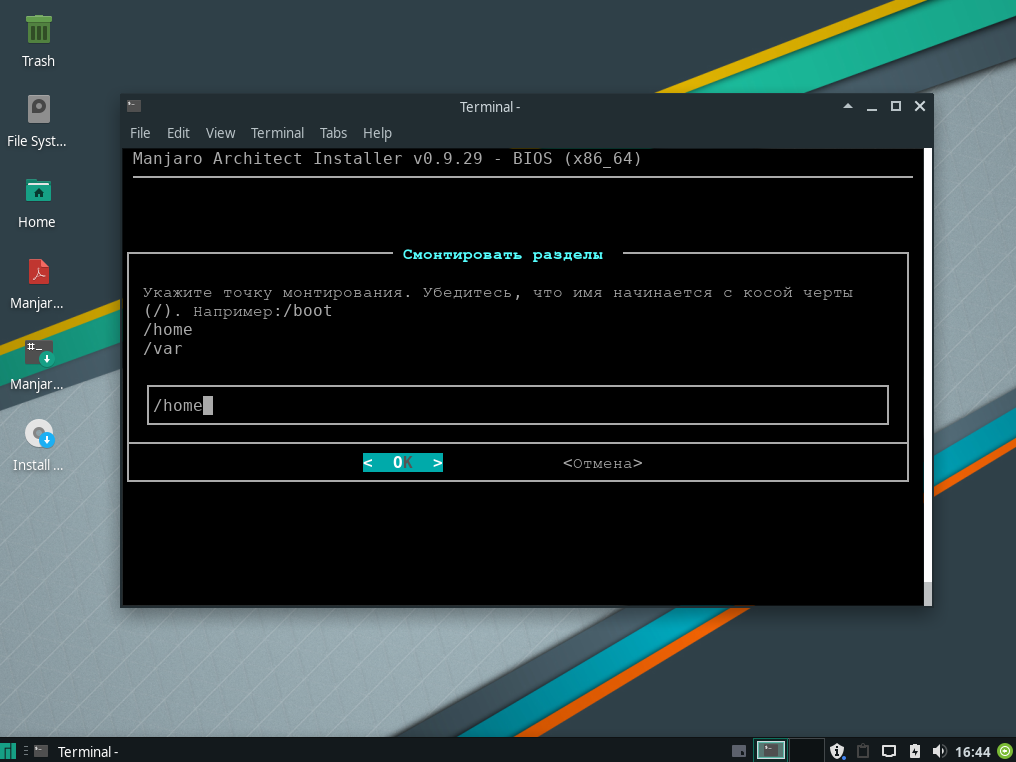 Помимо других данных, он также включает дерево ABS и кеш pacman. Сохранение кэшированных пакетов дает возможность перейти на более раннюю версию пакетов и поэтому очень полезно. Из-за этого размер / var со временем будет расти. В частности, кеш pacman будет расти с установкой нового программного обеспечения и обновлений системы. Когда места на диске недостаточно, вы можете безопасно очистить этот каталог. / var Выделение 8–12 ГБ является подходящим значением для настольных систем, и конкретное значение зависит от количества установленного программного обеспечения.