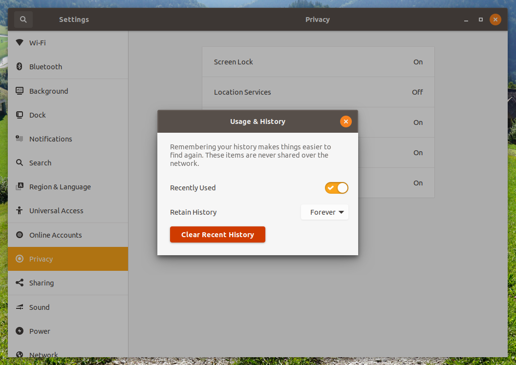 Думаю, мне не нужно читать лекции о важности конфиденциальности в эпоху PRISM (государственная программа США — комплекс мероприятий, осуществляемых с целью массового негласного сбора информации, передаваемой по сетям электросвязи). Ubuntu запоминает ваше использование и историю, чтобы рекомендовать вам часто используемые приложения и тому подобное. И это никогда не передается по сети. Но если вас это не устраивает, вы всегда можете отключить и удалить свою историю использования в Ubuntu. Настройки > Конфиденциальность > Использование и история (Settings > Privacy > Usage & History)