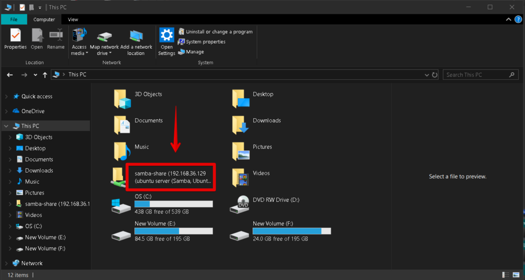 Вы можете подключиться к общему ресурсу Samba с помощью ОС Windows двумя способами: