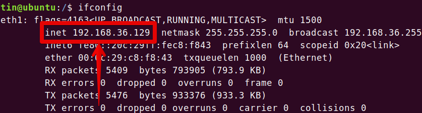 Вы можете проверить IP-адрес любой машины, запустив ifconfig в Терминале.