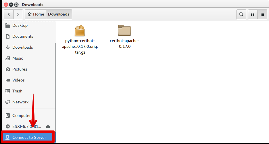 Чтобы получить доступ к общему ресурсу Samba через графический интерфейс, откройте диспетчер файлов Linux. Нажмите Connect to Server в левой части окна диспетчера файлов.