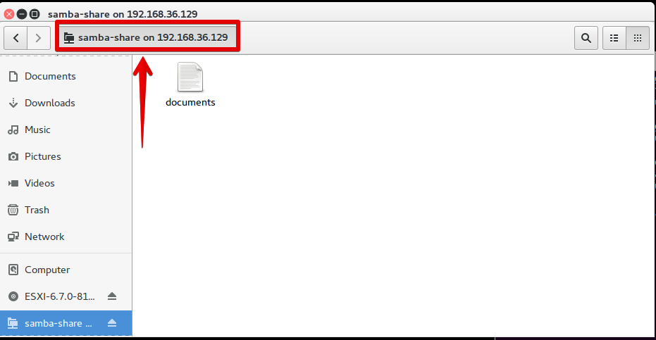 После завершения установки выполните команду, используя следующий синтаксис для доступа к общему ресурсу Samba.