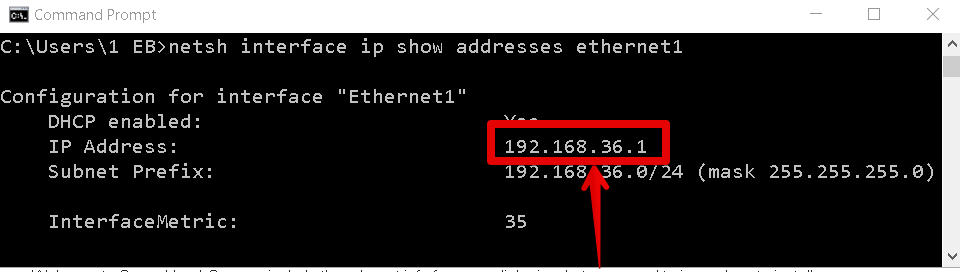 - IP-адрес Windows (клиент): 192.168.36.1/24