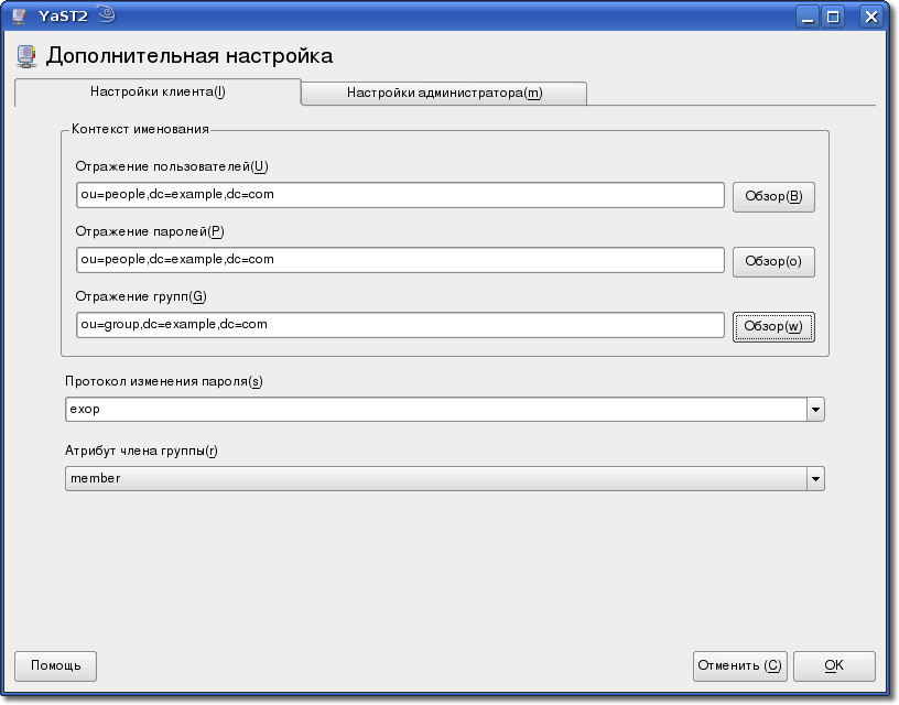 Нажмите OK для подтверждения изменений и выхода из модуля конфигурации клиента LDAP и переходите к настройке samba