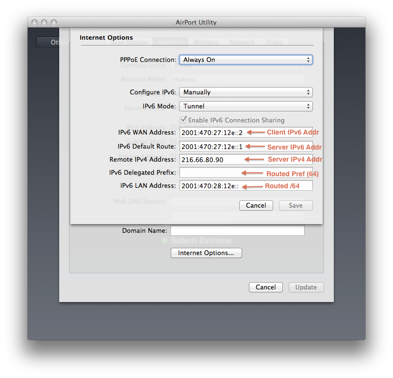 AirPort Extreme через Тоннельного брокера (Tunnel Broker)