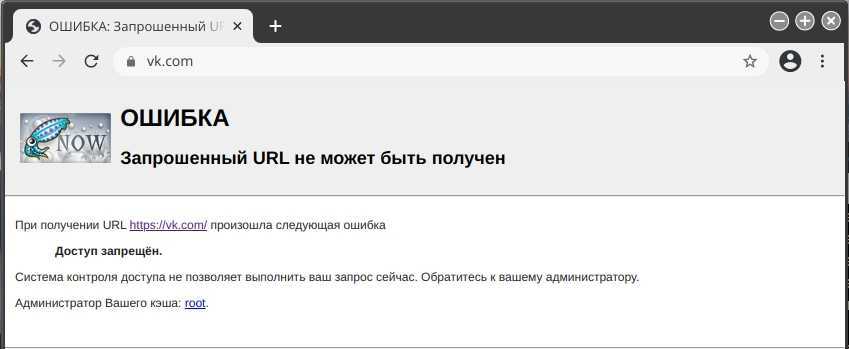 Если все сделано правильно, то при входе на запрещенный сайт должна отобразиться такая страница: