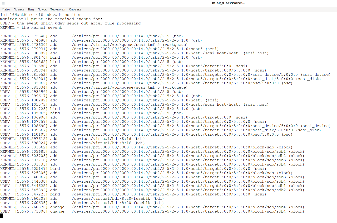 - In case a new storage device is connected over USB, udevd is notified by the kernel and itself notifies the udisksd-daemon. That daemon could then mount the file systems.