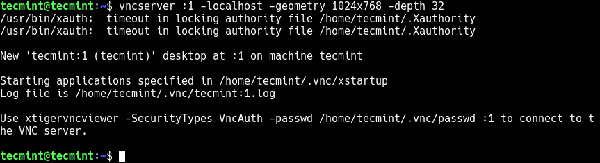 Затем начальная настройка VNC завершится и создаст конфигурационные файлы: