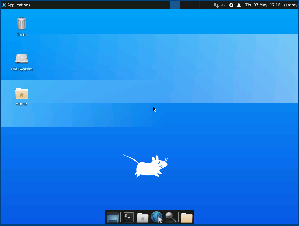 При появлении запроса введите пароль пользователя, и вы должны увидеть рабочий стол Xfce по умолчанию. Это будет выглядеть примерно так: