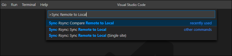 После сохранения файла settings.json нажимаем в VSCode F1, выполняем команду Sync Remote to Local. В локальную папку, указанную в настройках, скопируются все файлы с сервера.