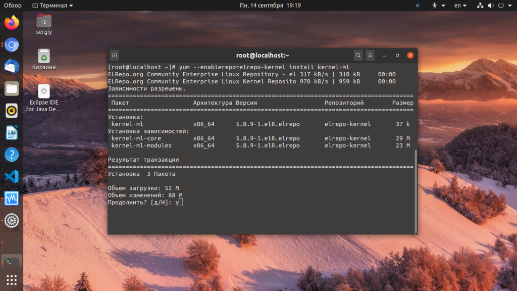 После завершения установки ядра будет автоматически обновлен загрузчик Grub и вам останется только перезагрузить компьютер чтобы изменения вступили в силу