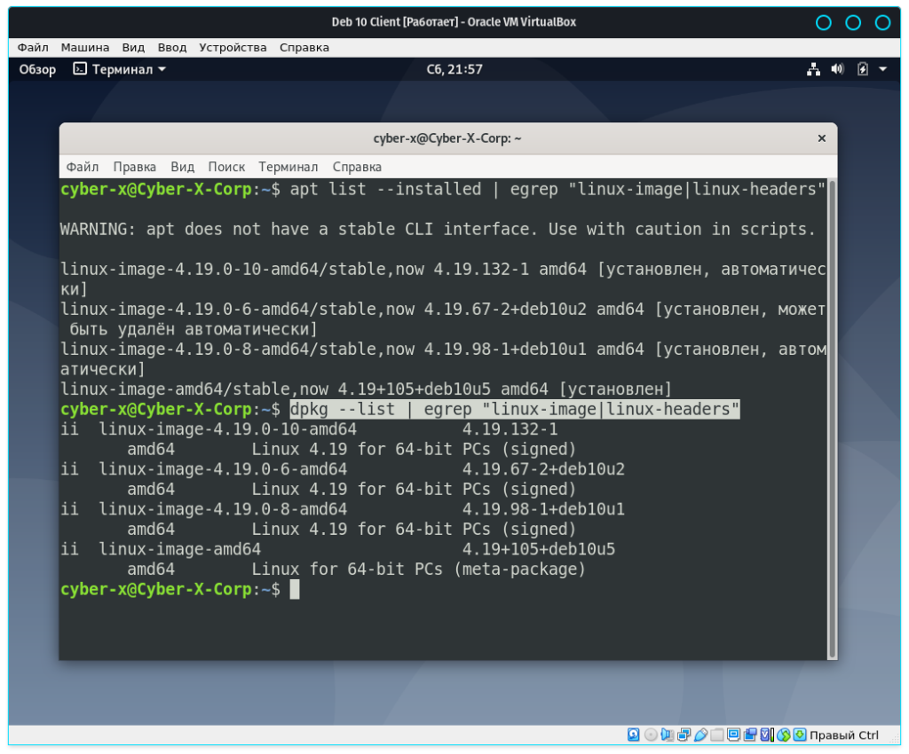 Дальше нужно обновить список пакетов, а затем смотрим, какие версии ядра появились в системе: