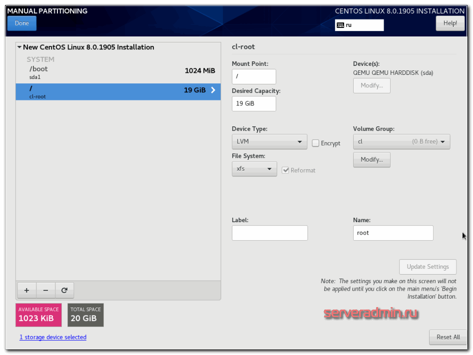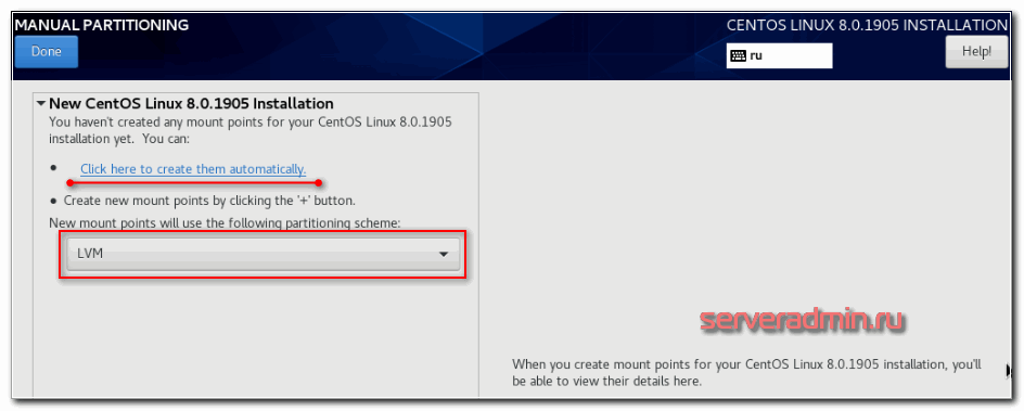 Жмем Done. Открывается немного кривое окно управления разделами жесткого диска.