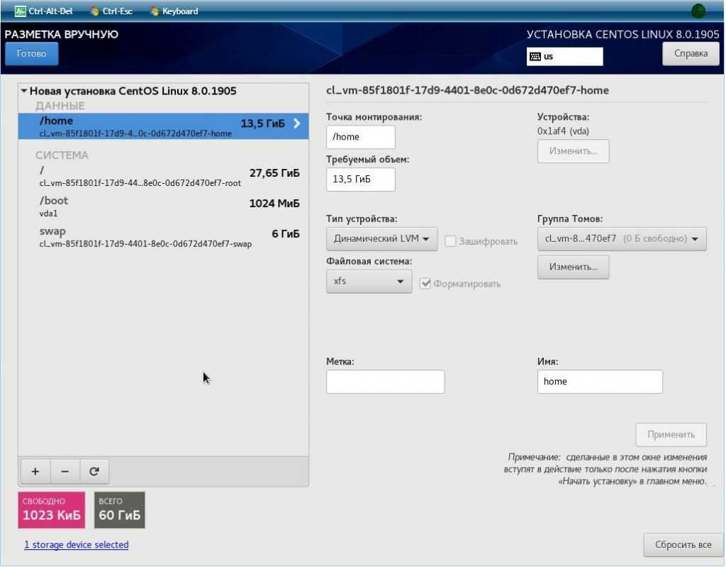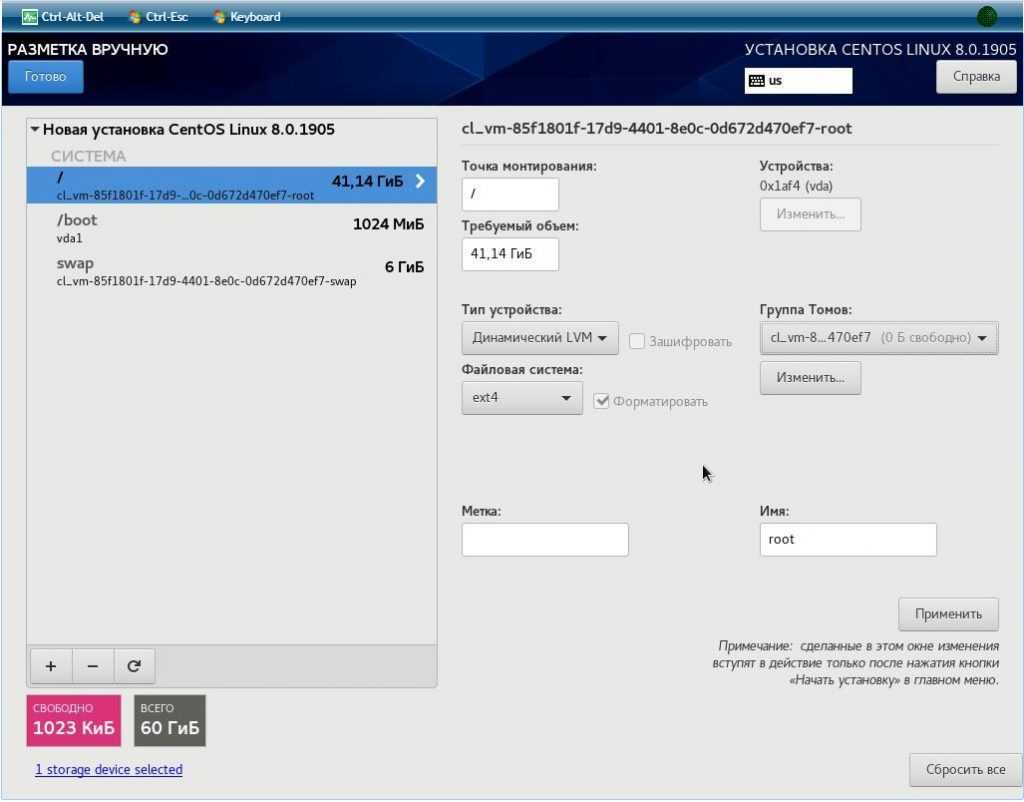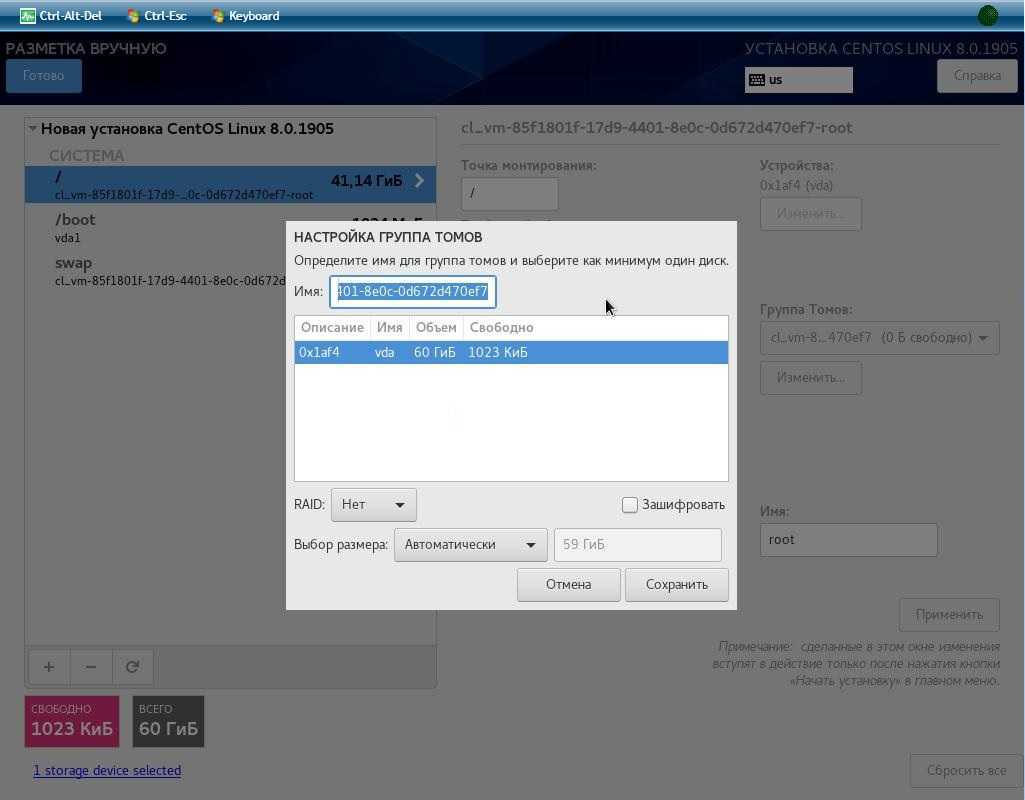 Все остальные параметры выставляем как было рассказано выше. Теперь можно начинать установку CentOS 7 на программный raid, который мы только что создали.