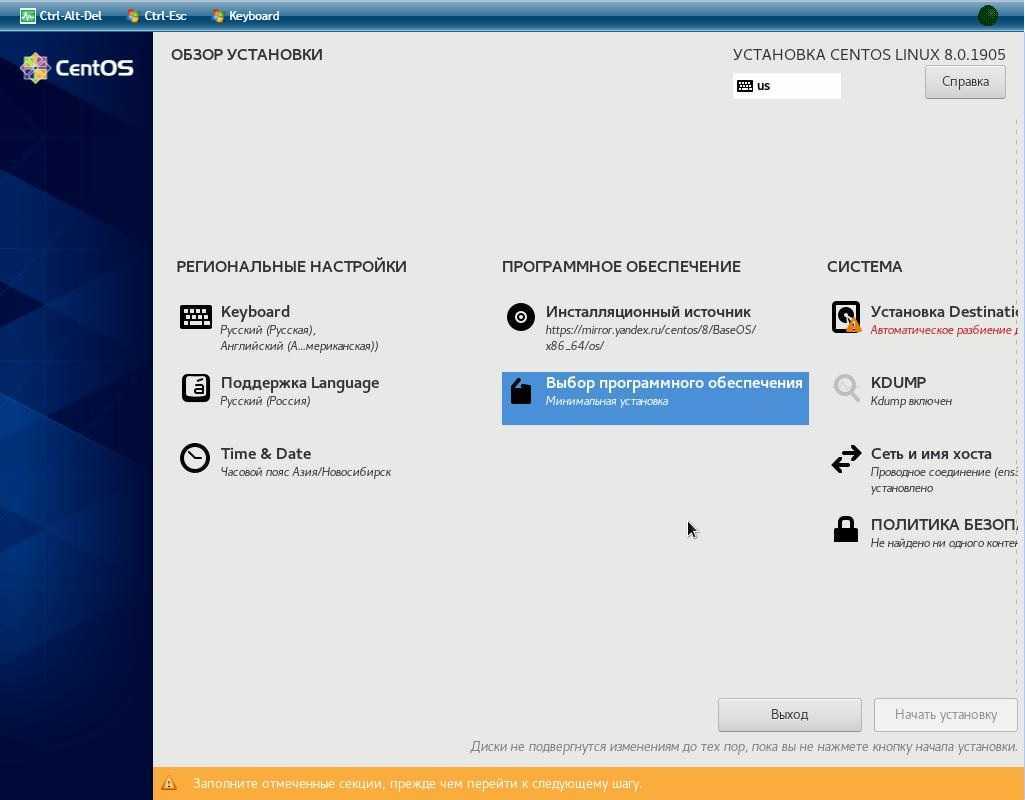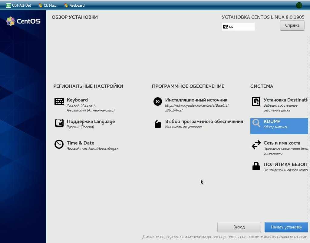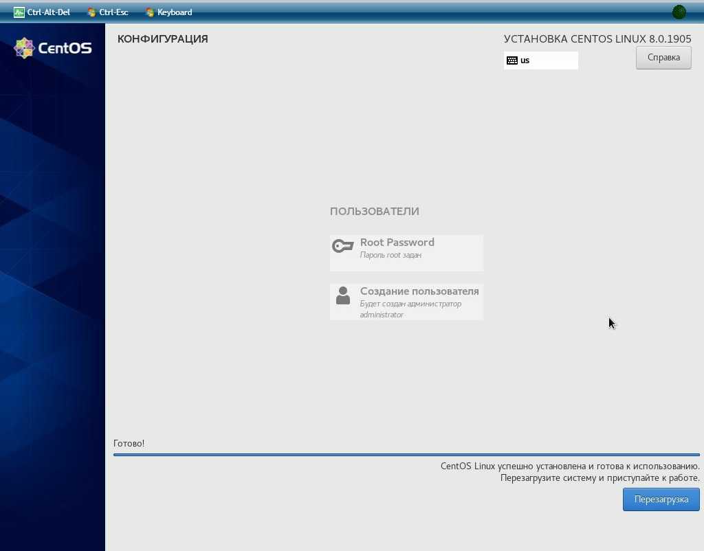 После выполнения данных действий установка CentOS 8 будет успешно завершена. Далее необходимо извлечь установочный носитель, перезагрузить систему и убедиться в том, что она корректно загружается.