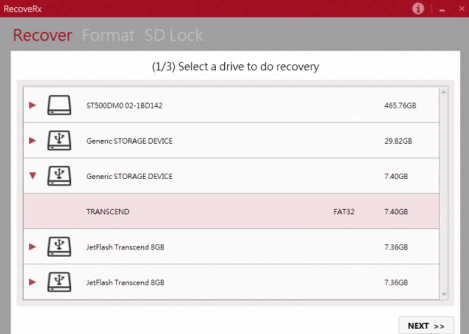 Как говорилось ранее, для каждого флеш-накопителя, в зависимости от компании-производителя, существуют оптимальные программные инструменты. Так для устройств от Transcend наиболее подходящим вариантом является официальный программный продукт — Transcend RecoveRx. Данная утилита позволяет осуществлять глубокий поиск данных, которые были удалены ранее. После нахождения таких файлов возможно выполнить восстановление.