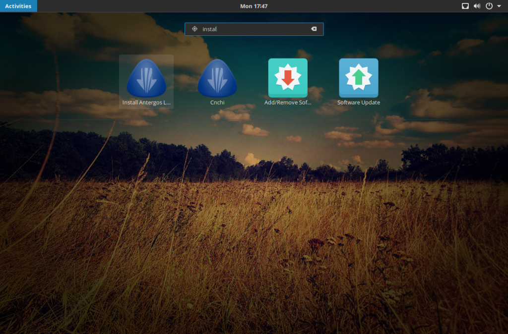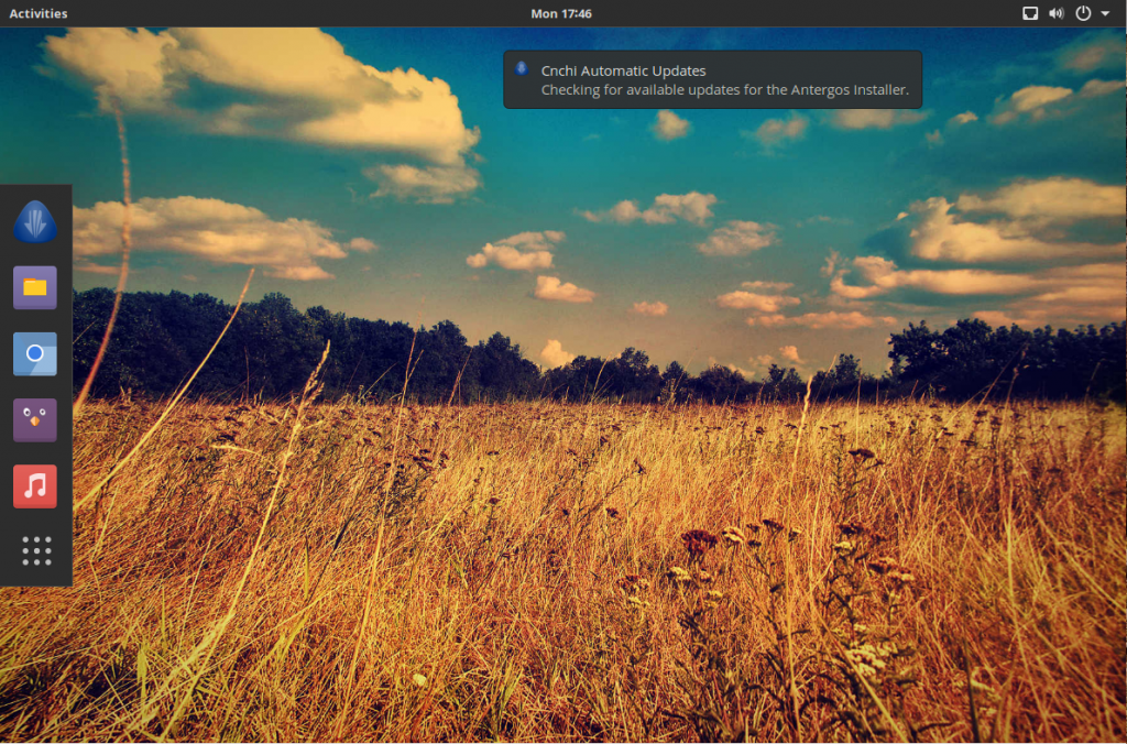 Основным отличием от Arch Linux является то, что Antergos полностью готов к работе после установки. В качестве рабочей среды выступает GNOME 3. Система настроена и содержит предустановленный необходимый базовый набор программ. Поддерживается проигрывание аудио и видео файлов.