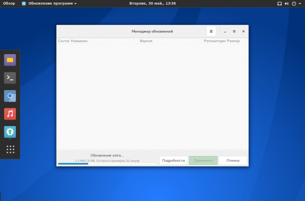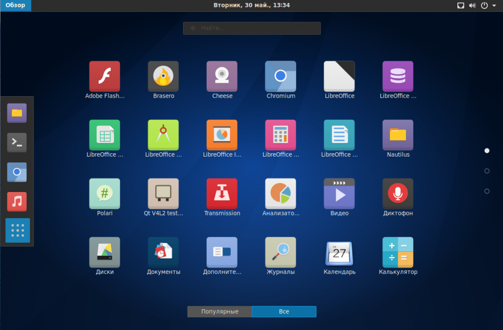После того как завершится загрузка системы, откроется рабочий стол Gnome: