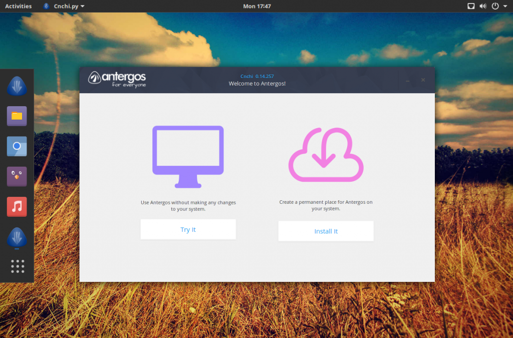 Чтобы установить Antergos на компьютер нужно выбрать вариант «Install It»: