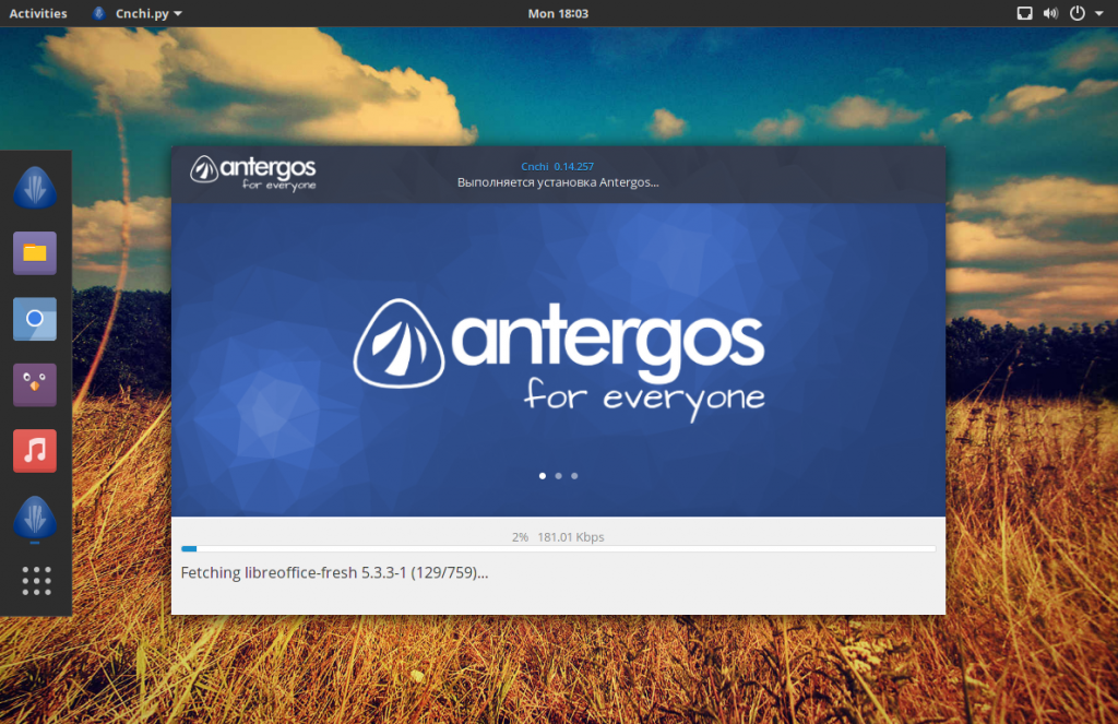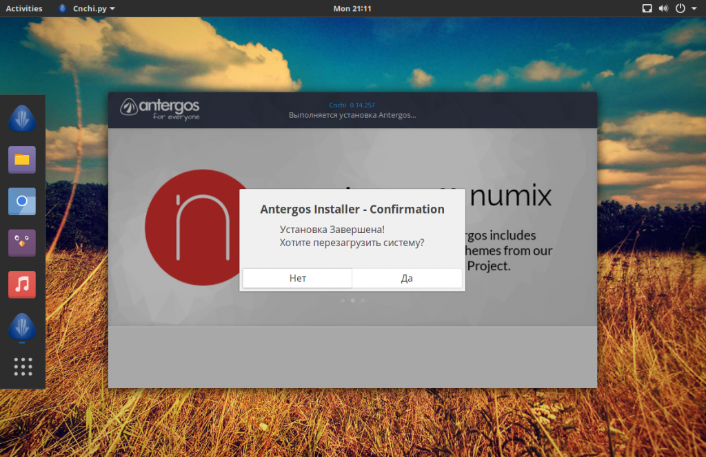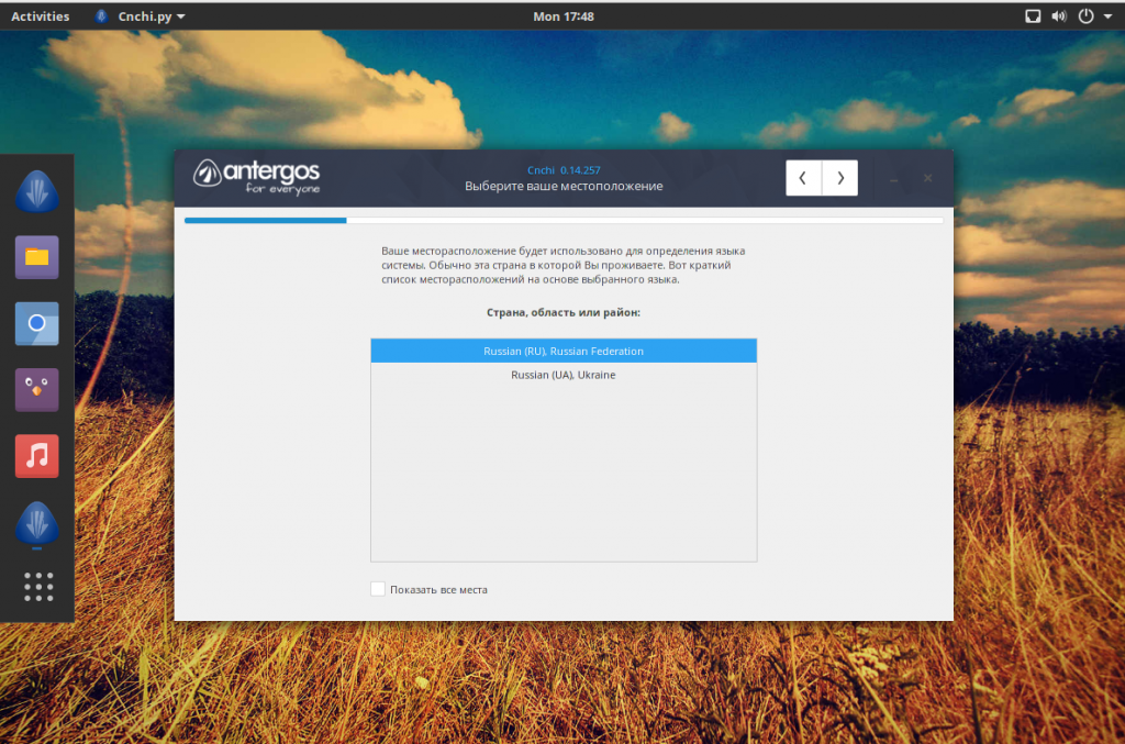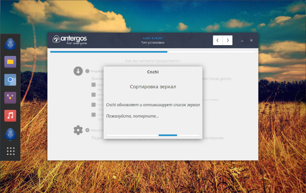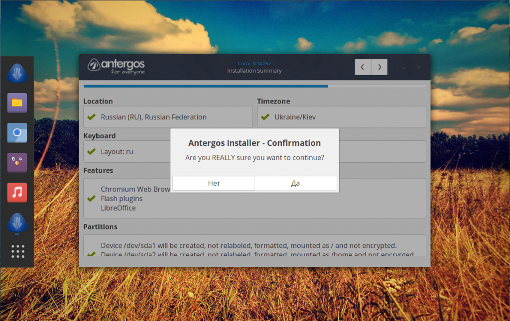 Дальше начинается установка Antergos, здесь все намного проще, чем в том же Arch Linux, потому что здесь есть графический установщик, но мы рассмотрим подробно все шаги.