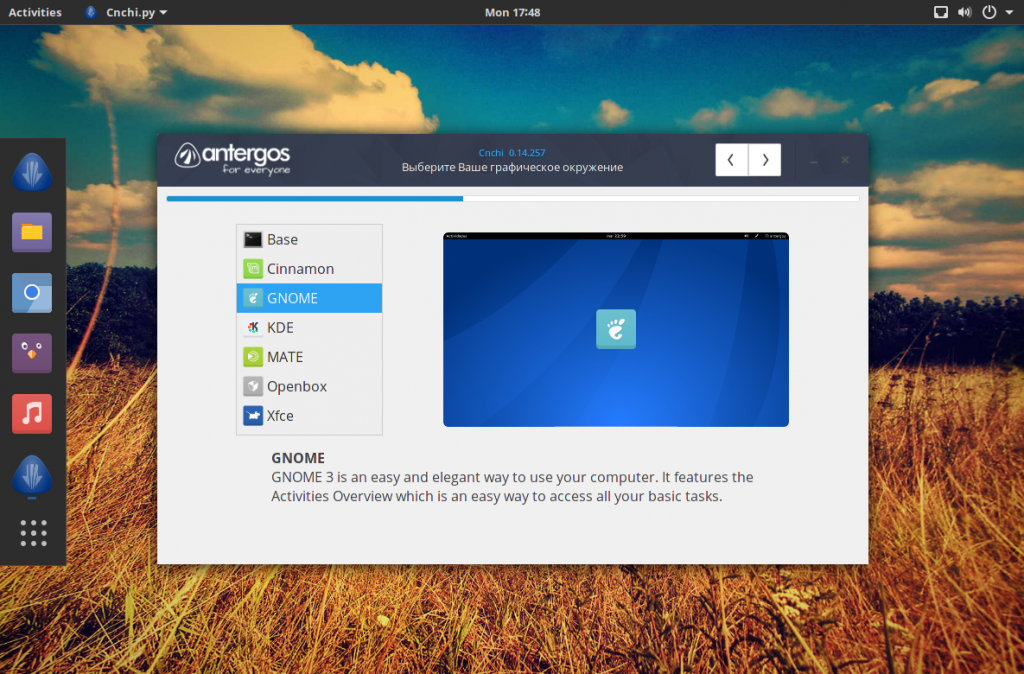 На этом этапе вы можете выбрать окружение рабочего стола, которое хотите использовать в новой системе: