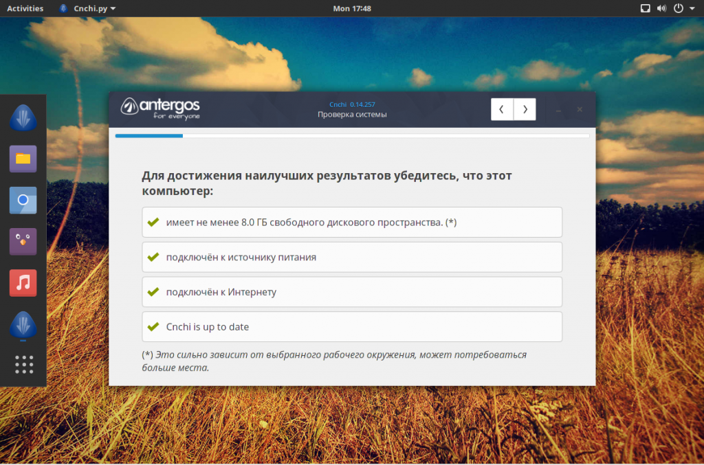 Установщик похож на то, что мы привыкли видеть в Ubuntu. Дальше будет проверено соответствует ли ваша система минимальным требованиям: