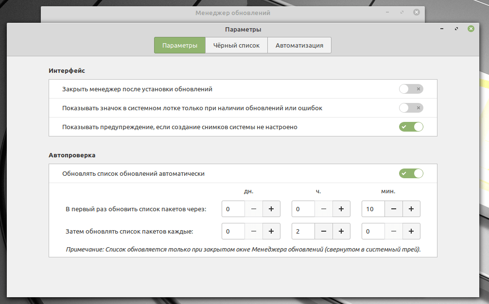 Linux Mint 19.2 Настройка обновлений — Автоматизация