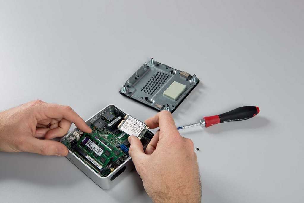 В Intel NUC дополнительный модуль оперативной памяти и mSATA SSD устанавливаются в два счета