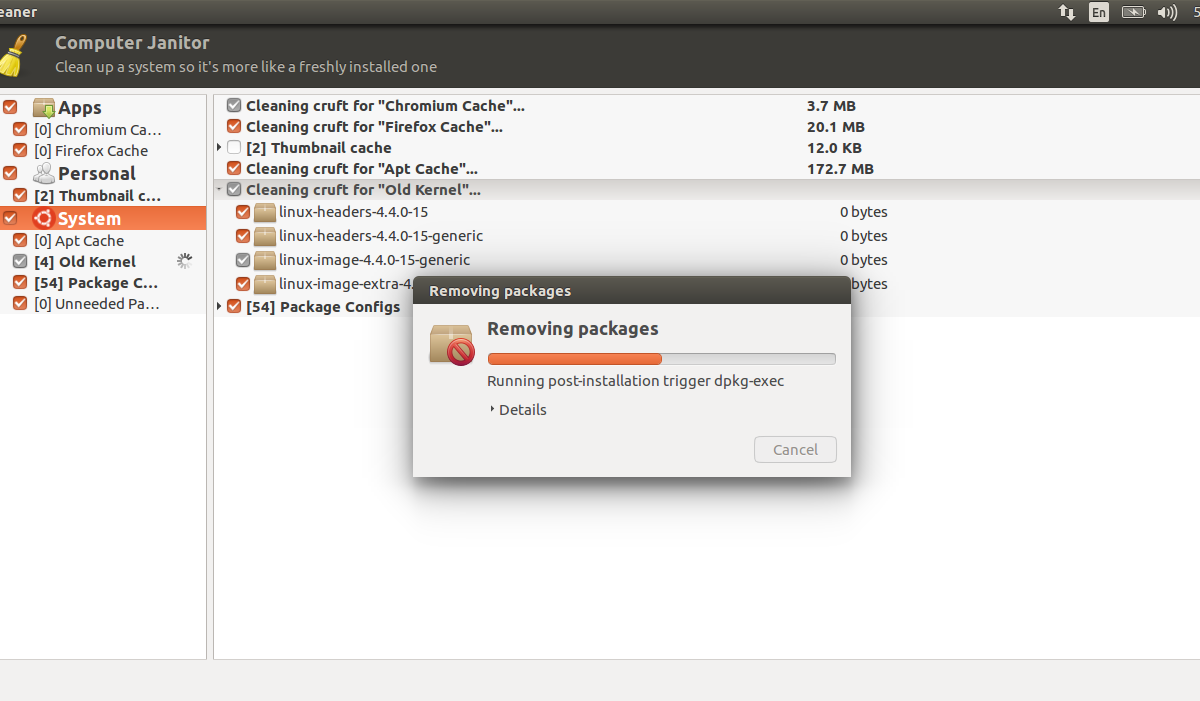 Утилита также деинсталлирует: кэшированные данные APT, кеш миниатюр, неиспользуемые файлы, старенькие ядра, а также ненужные установщики. Таким образом он оптимизирует работу вашей системы и помогает вам освобождать место. У этой программы практически нет недостатков, ведь создана именно для «Убунту».