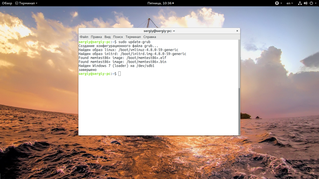 Если же необходимо обновить и меню grub (после установки Windows), то нужно выполнить еще и эту команду: