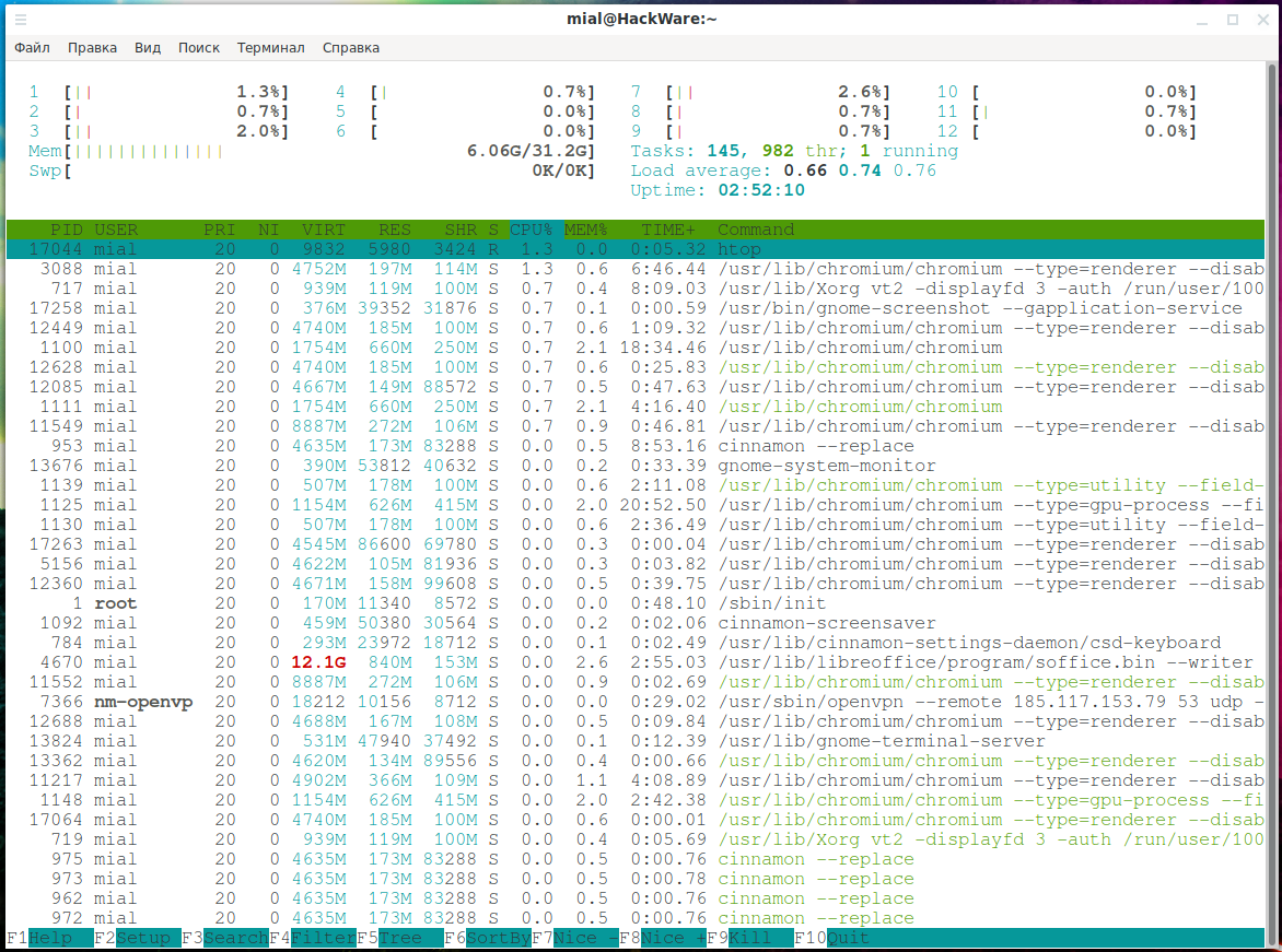 TIME+ — количество процессорного времени, потраченного на выполнение процесса.