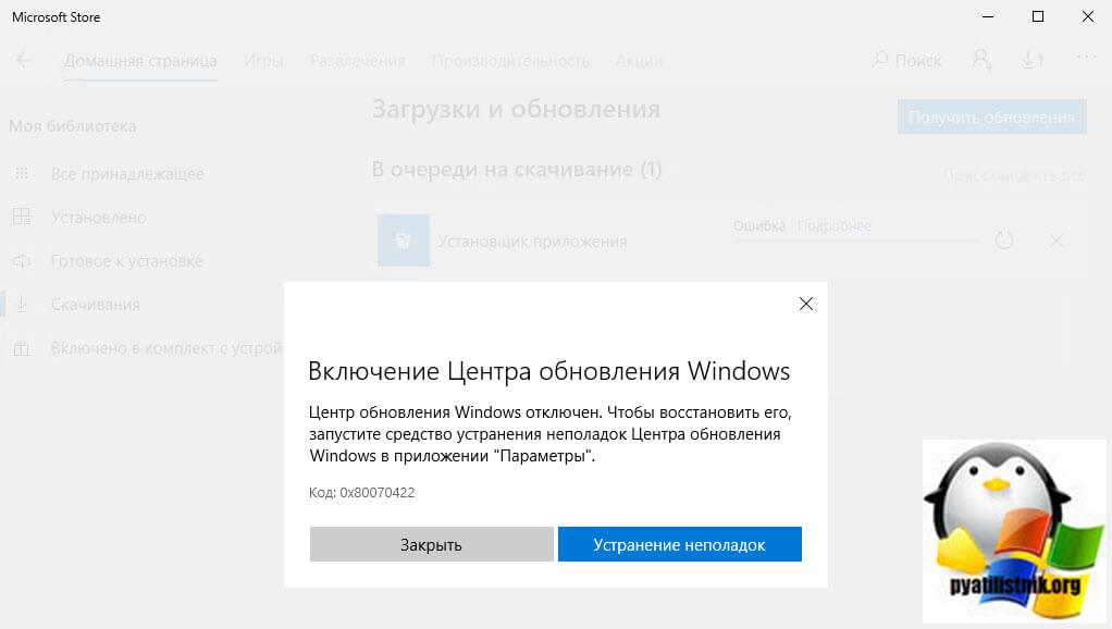 В итоге Microsoft App Installer жалуется, что центр обновления Windows отключен.