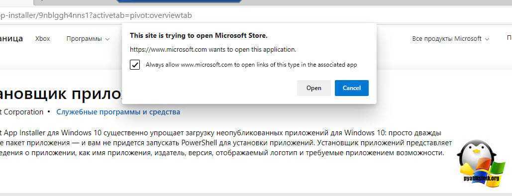 Далее подтвердите, что подтверждаете открытие данного приложения через Microsoft Store