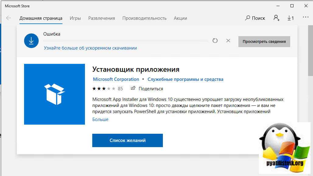 Если у вас выскакивает ошибка при скачивании Microsoft App Installer, то нужно посмотреть причину в подробных сведениях. Если проблем нет, то Microsoft App Installer установится без проблем.